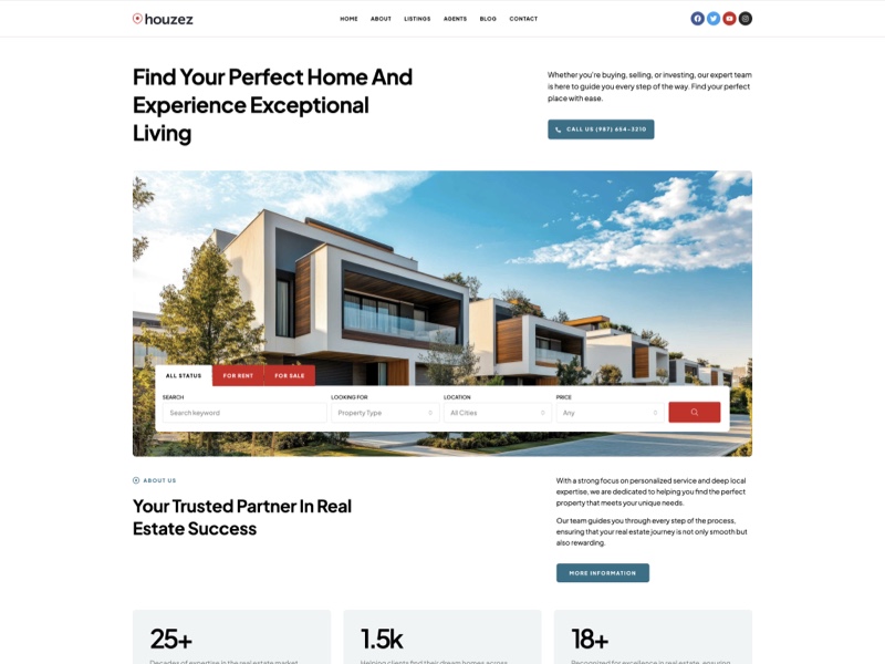 The most flexible real estate WordPress theme packed with advanced tools to design, manage, and grow your real estate business.